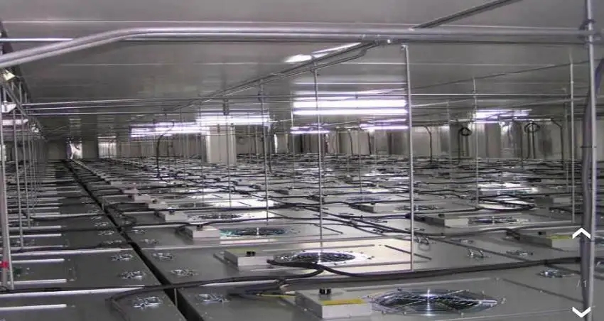 第三種形式就是主要講的FFU循環(huán)風系統(tǒng),這套系統(tǒng)在半導體制造行業(yè)應用最廣泛的一種形式。這種形式的特點由FFU提供循環(huán)空氣的動力,整個循環(huán)空氣通過一臺一臺小風機進行循環(huán)風系統(tǒng),在FFU操作引擎的時候,在施工的時候都不會造成影響,用起來非常方便,并且節(jié)省空間,另外非常重要一點是潔凈度安全性高。我們根據(jù)市場的情況設備不同的往里進,安裝施工包括施工人員還有機器在施工的過程中一直存在,如果安全度不高受到干擾的話,對生產(chǎn)會造成影響,所謂的缺點就是維護成本高。