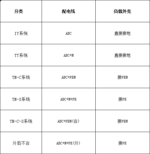2、T 表示設備外殼直接接地,它與系統(tǒng)中的其他任何接地點無直接關系;N 表示負載采用接零保護。